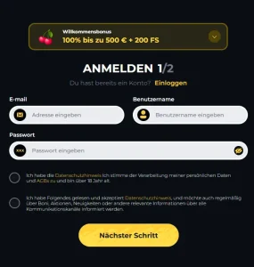 Nach dem ersten Login haben Sie direkten Zugriff auf den Kassenbereich, um Ihren Willkommensbonus zu aktivieren. Tipp: Halten Sie Ihre Daten aktuell, um Probleme bei der späteren Verifizierung zu vermeiden.